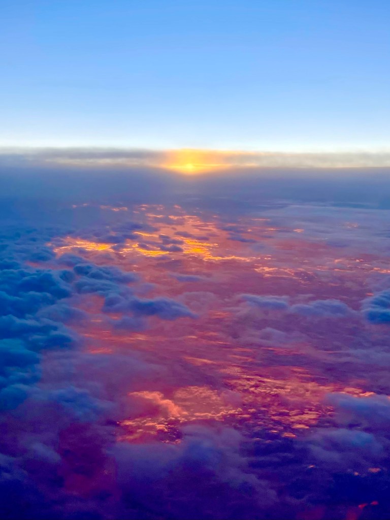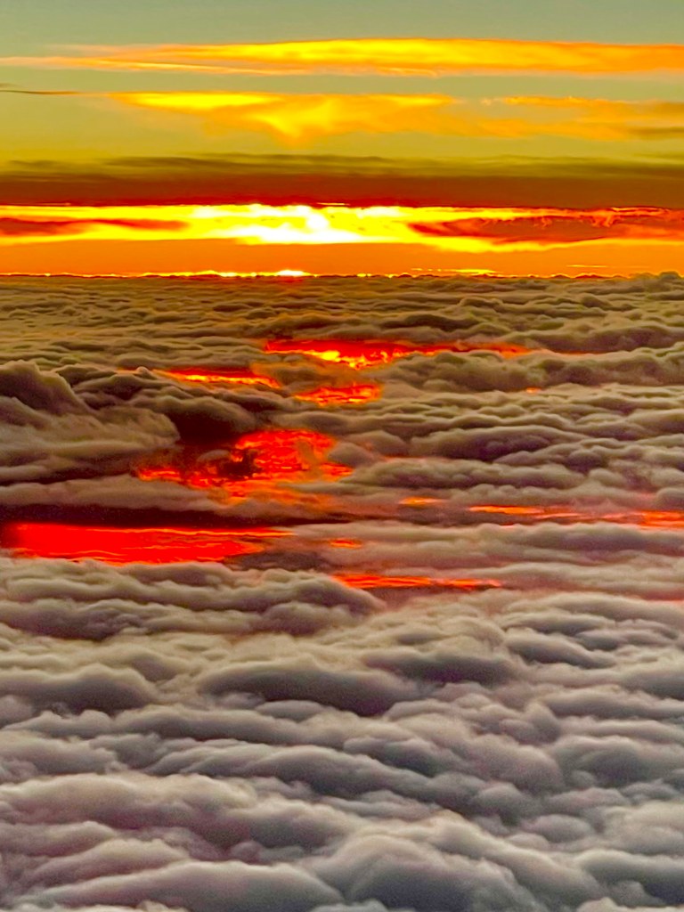 The sunset clouds, seen from the airplane, on my trip to Miami, were stunning, but some kind of major conflict was being expressed through them.